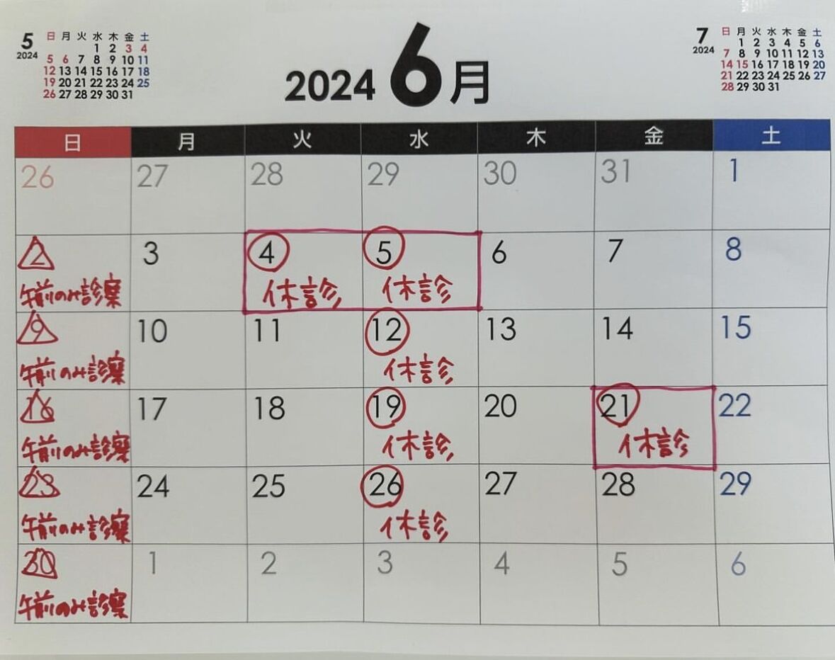 2024年6月の休診